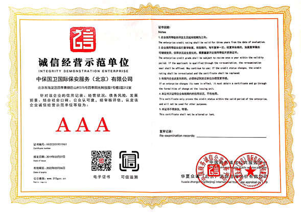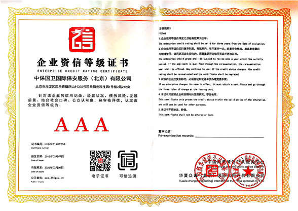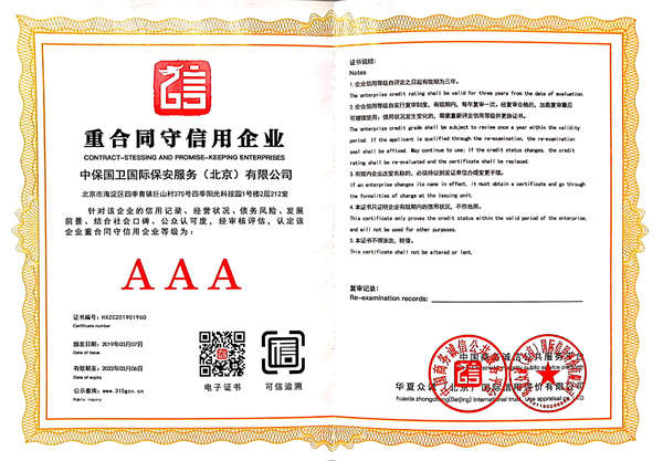 中保國衛(wèi)國際保安服務(北京)有限公司,屬中保國衛(wèi)集團旗下子公司。能全方位的為大型客戶提供優(yōu)質的安保、押運服務,是集人防和技防于一體的新型正規(guī)化綜合安保押運服務企業(yè),提供人防、物防、技防、聯網報*、非武裝押運等安防相關的一站式服務。